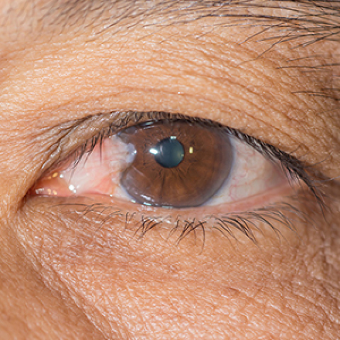 É caracterizado pelo crescimento de uma membrana no canto do olho (mais comum no canto interno) em direção à pupila, sobre a córnea.