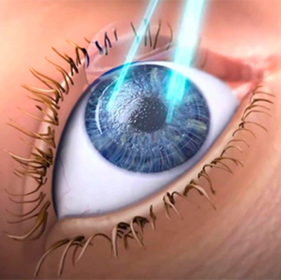Existem duas lentes no olho humano, a córnea mais externa e o cristalino mais interno, ambas convergentes e responsáveis pela focalização da imagem na retina. Durante a cirurgia refrativa é realizada uma moldagem na córnea com o objetivo de ajustar o grau